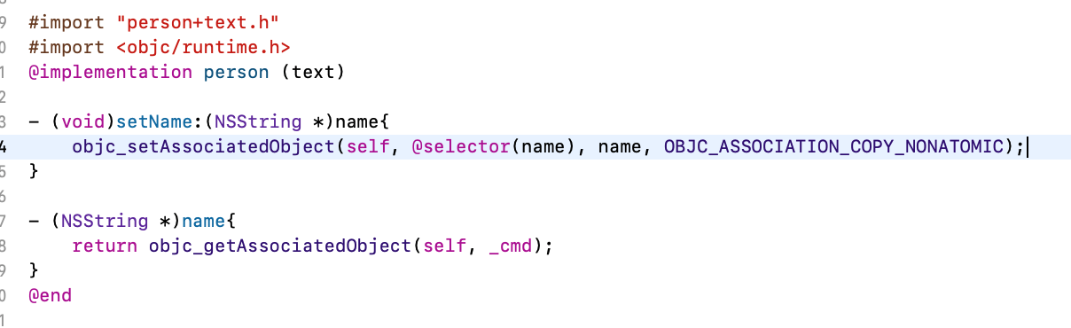 return objc_getAssociatedObject(self, @selector(name));