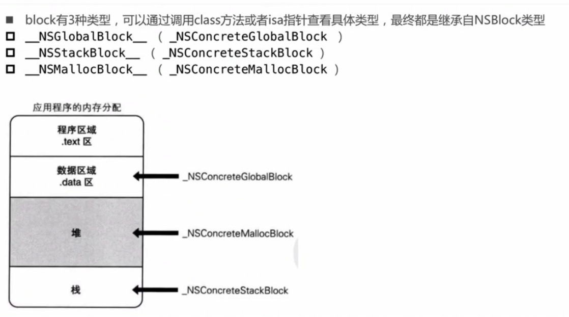 __NSGlobalBlock__(数据区block) 、__NSStackBlock__(盏区block) 、__NSMallockBlock__(堆区block)
