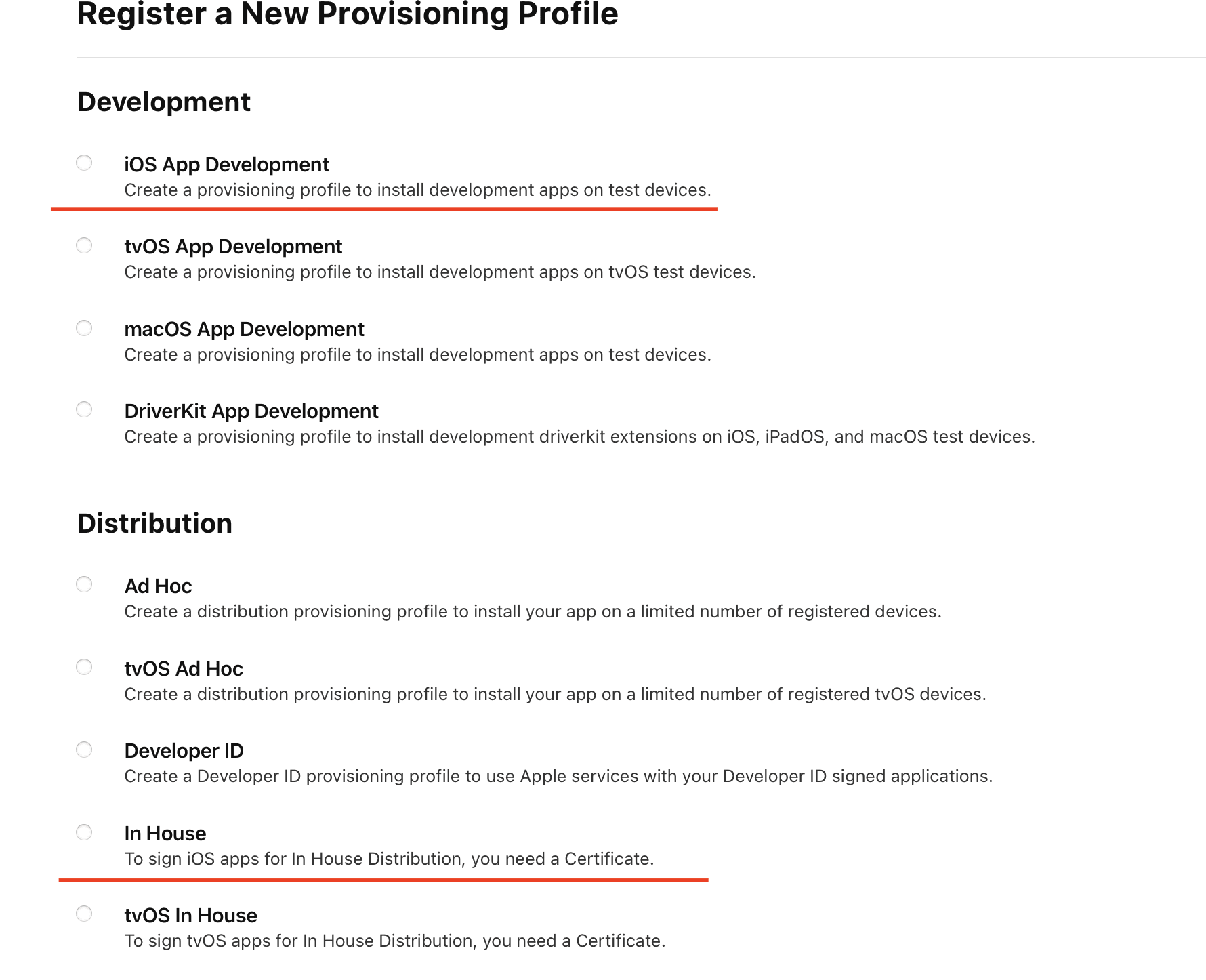如果是要分发出去给所有人安装,选择Distribution下的第三个In House