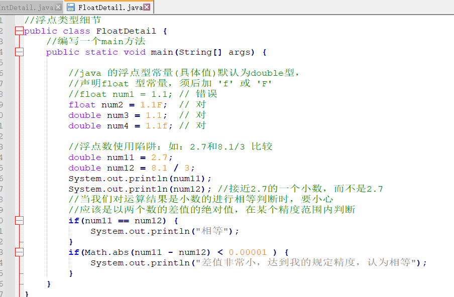 System.out.println("差值非常小,达到我的规定精度,认为相等");