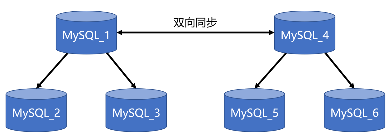 MySQL_1和MySQL_4之间要配置双向主从同步,其实很简单。就是先到MySQL_1节点上执行4条SQL语句,然后再切换到MySQL_4节点,依旧执行4条SQL语句,双向主从同步就配置完成了。