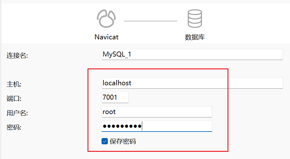 用Navicat连接本地电脑的7001端口。如果你用的是云主机,就去连接云主机的7001端口。