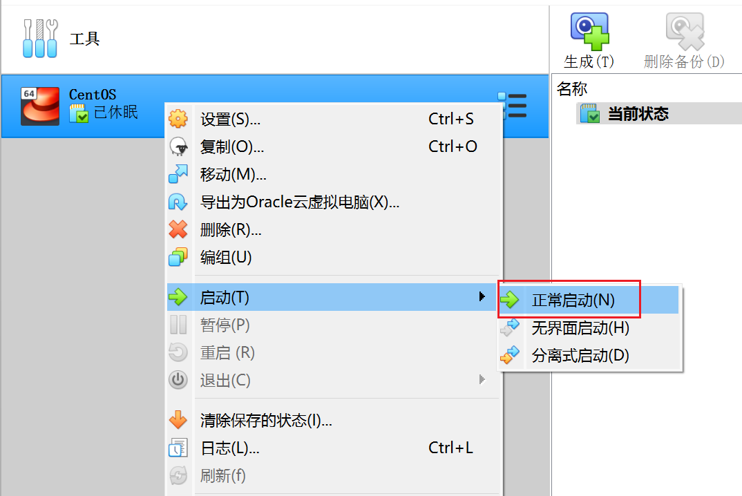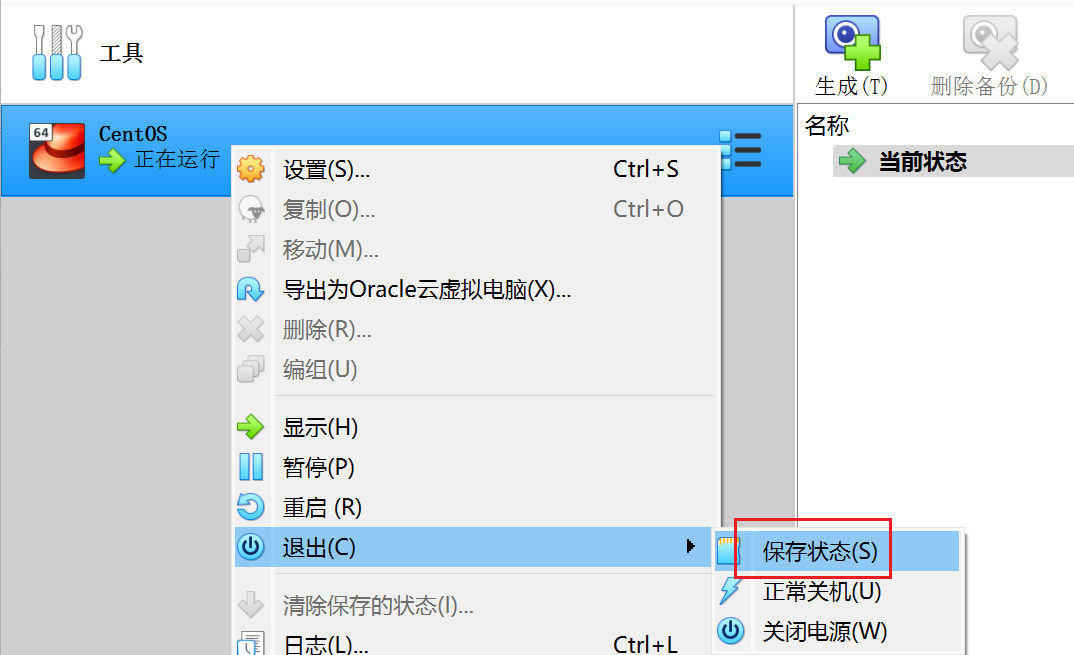 下次想用虚拟机的时候,选择恢复运行即可,免去了重新启动CentOS和Docker容器的步骤。