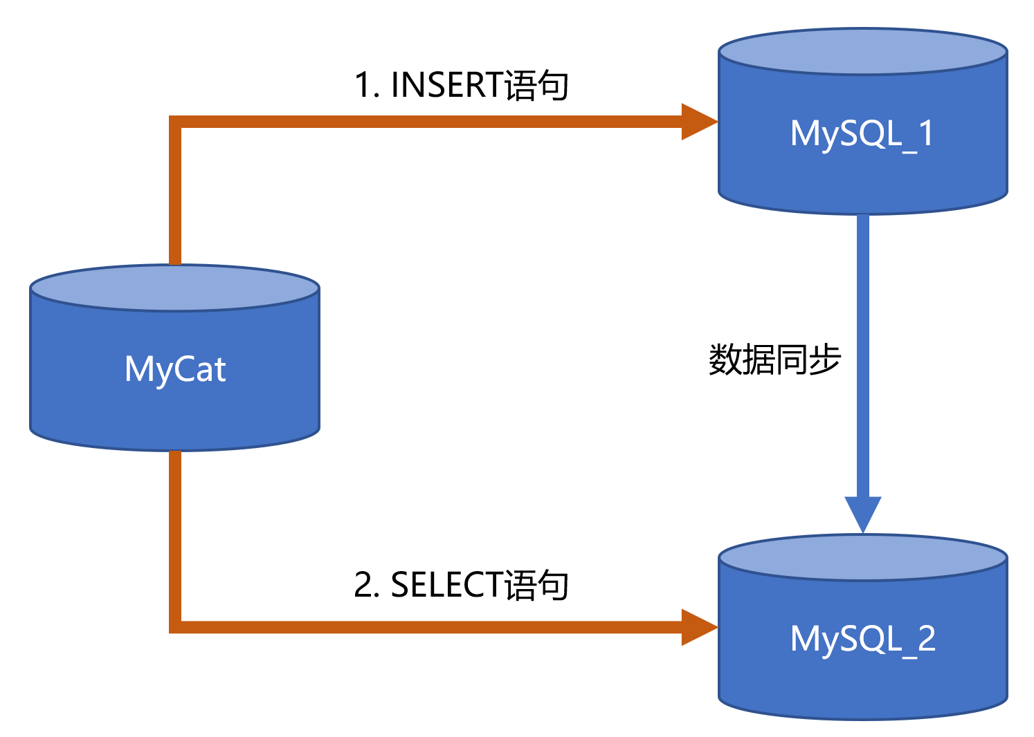 假设我们要执行的INSERT语句发送给了MySQL_1节点执行,但是紧接着马上执行了SELECT语句,这个查询语句被MyCat转发给MySQL_2执行。假设INSERT和SELECT语句之间的时间间隔短到1毫秒,导致MySQL_2还没有同步写入的数据,查询语句就来了,自然是查询不到刚刚插入的数据。