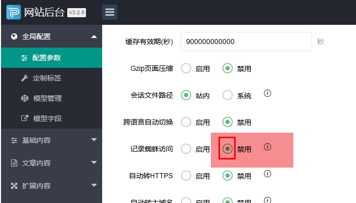 pbootcms网站后台的记录蜘蛛访问功能可以关闭吗?
