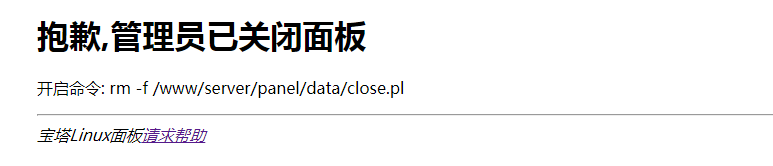 如需开启面板,输入开启命令:rm -f /www/server/panel/data/close.pl