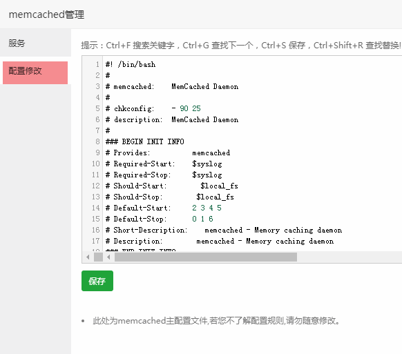 注意事项:此处为Memcached主配置文件,若您不了解配置规则,请勿随意修改。