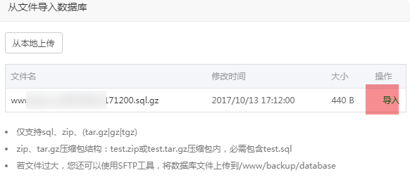 若无法正常导入,可以尝试使用phpmyadmin导入。