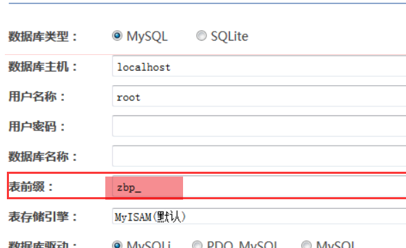 把默认的表前缀“zbp_"改成”zbp1_“或者改成其他都行。
