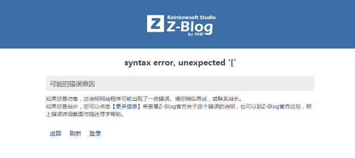 ZBlogPHP搬家出现 syntax error, unexpected '[' 错误怎么办