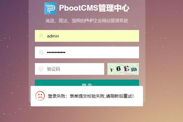 pbootcms后台“登录失败:表单提交校验失败,请刷新后重试”