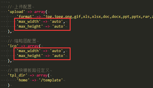 config.php文件中找到上传配置部分,将最大宽度和高度改为auto。