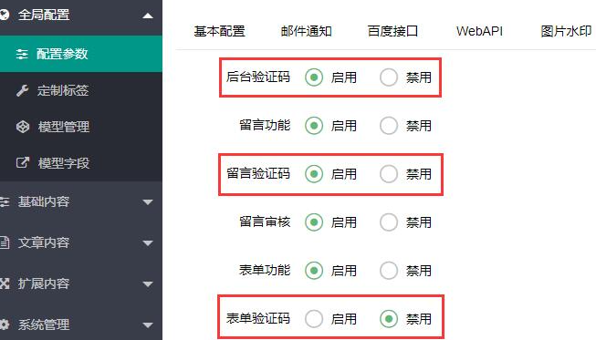 PbootCMS如何取消后台、留言、自定义表单验证码