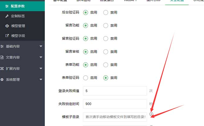 - 在“安全配置”中找到“模板子目录”设置项。