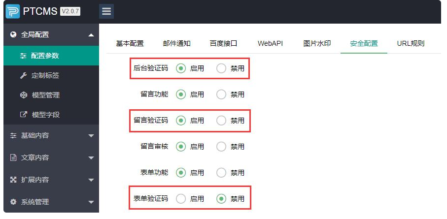 PbootCMS如何取消后台、留言、自定义表单验证码