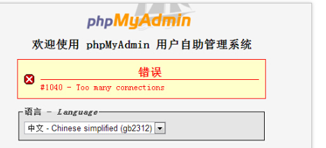 通过phpMyAdmin连接数据库失败,并提示 Too many connections。