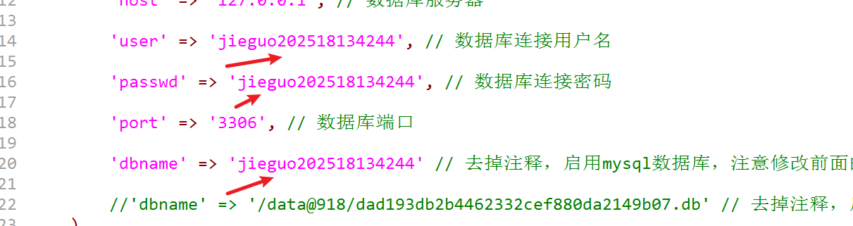 第四步:修改数据库配置文件,根据自己IDE数据库信息调整就行。