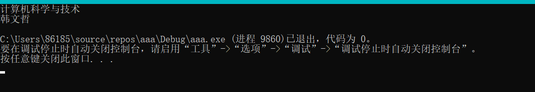 #include<stdio.h> main() { printf("计算机科学与技术\n"); printf("韩文哲\n"); }