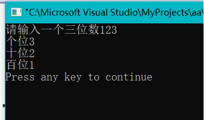 #include <stdio.h> main() { int a,ge,shi,bai; printf("请输入一个三位数"); scanf("%d",&a); ge=a%10; shi=a/10%10; bai=a/100; printf("个位%d\n十位%d\n百位%d\n",ge,shi,bai); }![]()