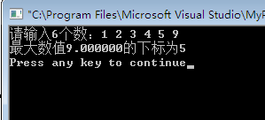#include<stdio.h> main() { double a[6],max; int i,m; printf("请输入6个数:"); for(i=0;i<=5;i++) scanf("%lf",&a[i]); max=a[0]; m=0; for(i=1;i<=5;i++) if(a[i]>max) { max=a[i]; m=i; } printf("最大数值%f的下标为%d\n",max,m); }