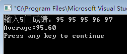 #include<stdio.h> main() { float a[5],ave=0; int i; printf("输入5门成绩:"); for(i=0;i<=4;i++) { scanf("%f",&a[i]); ave+=a[i]; } ave/=5; printf("Average:%.2f\n",ave); }