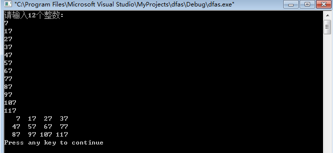 #include<stdio.h> main() { int a[3][4]; int i,j; printf("请输入12个整数:\n"); for(i=0;i<=2;i++) for(j=0;j<=3;j++) scanf("%d",&a[i][j]); for(i=0;i<=2;i++) { for(j=0;j<=3;j++) printf("%4d",a[i][j]); printf("\n"); } }