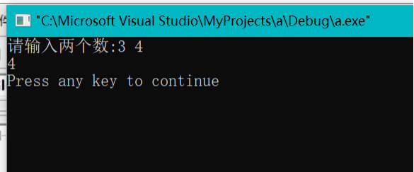 #include<stdio.h> main() { int a,b; printf("请输入两个数:"); scanf("%d %d",&a,&b); if(a>=b) printf("%d\n",a); else printf("%d\n",b); }