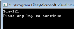 #include<stdio.h> main() { int i=1,sum=0; while(i<=21){ sum+=i; i+=2; } printf("Sum=%d\n",sum); }