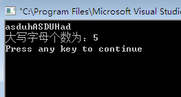 #include<stdio.h> main() { char str[20]; int i,m; m=i=0; gets(str); while(str[i]!='\0') { if(str[i]>='A'&&str[i]<='Z') m++; i++; } printf("大写字母个数为:%d\n",m); }