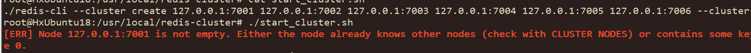 报错了, 是因为我之前有构建过集群,而且产生过数据增删,所以产生了持久化的文件,它的这个意思就是说,让我把这个持久化文件都删了(也就是redis0*文件夹下的所有rdb文件)