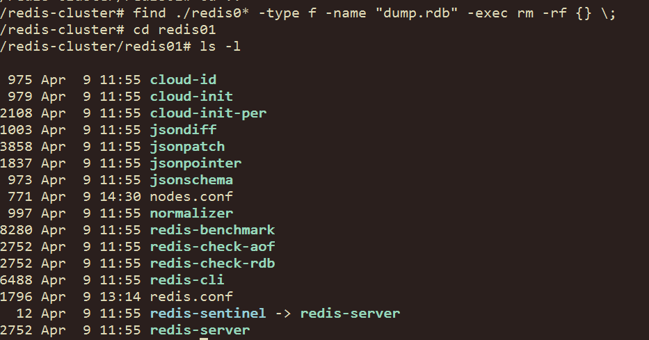 A:redis01是安装好redis后, 将它的bin目录拷贝一份后,命名redis0*放在这里,其中还将redis.conf拷贝一份,放在每个redis0*里面了,从后面的启动可以看到