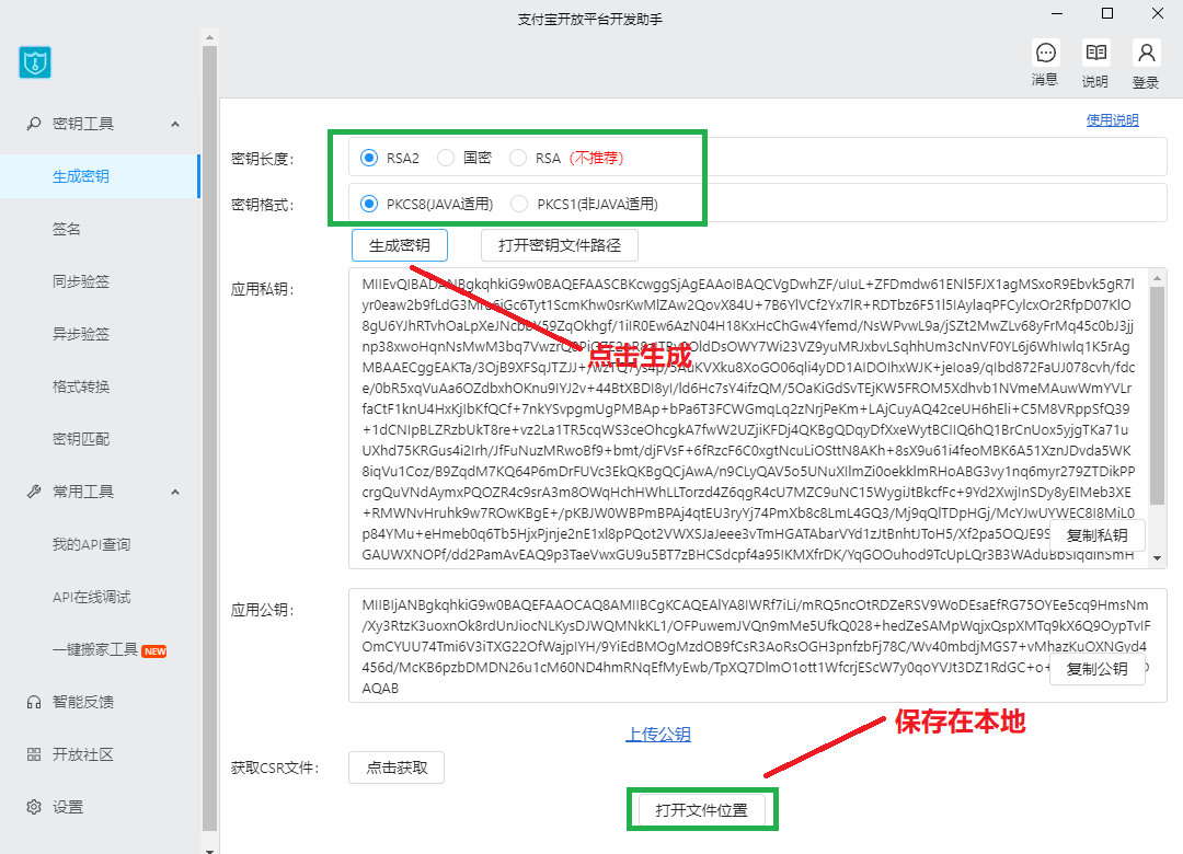 二、等待应用上线,同时配置沙箱需要使用支付宝官方提供的工具生成一个应用公钥