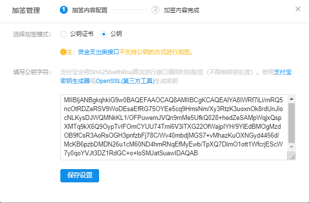 复制应用公钥到沙箱设置获取支付私钥