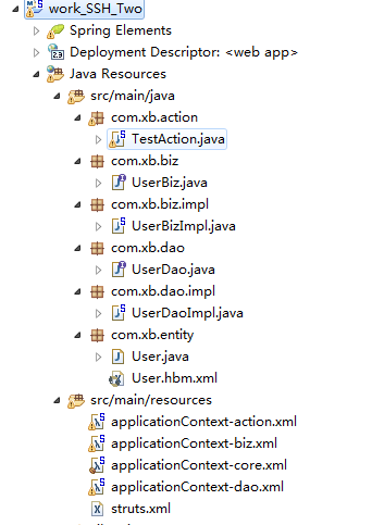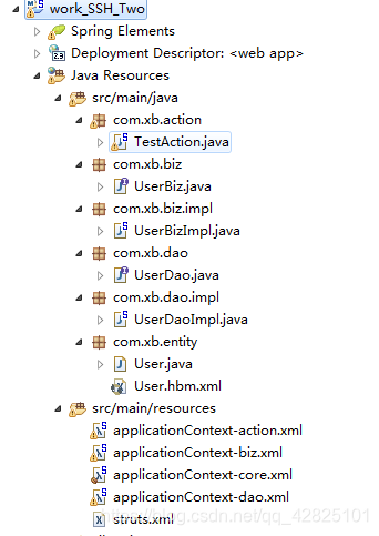 四、在resources文件夹下创建struts和spring-action的配置文件和spring-core的配置文件