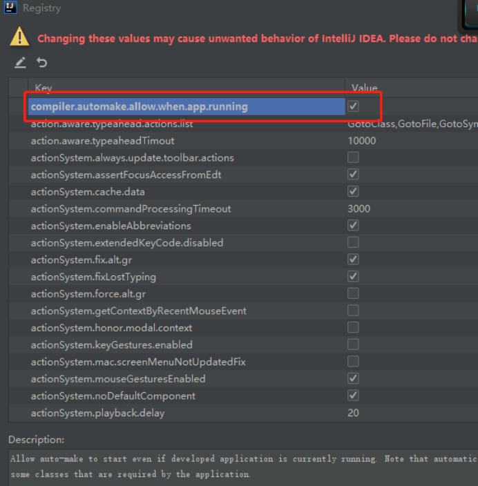 (4) ctrl + shift + alt + / , 选择Registry,勾上 Compiler autoMake allow when app running