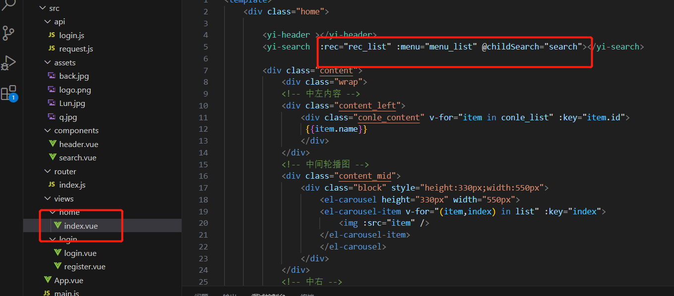 在父组件里定义用法,比如单击搜索框事件,在控制台打印搜索内容