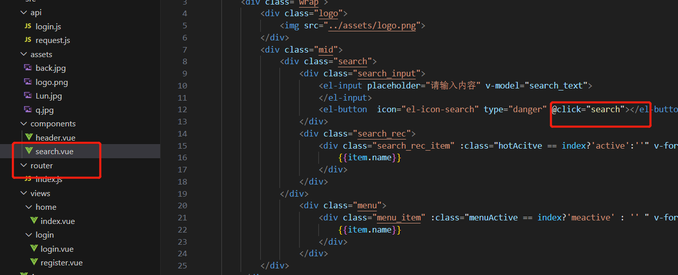 进而实现后台打印搜索内容,获取内容是v-model 定义