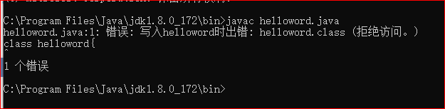 进行javac helloword.java时报错,提示无法写入