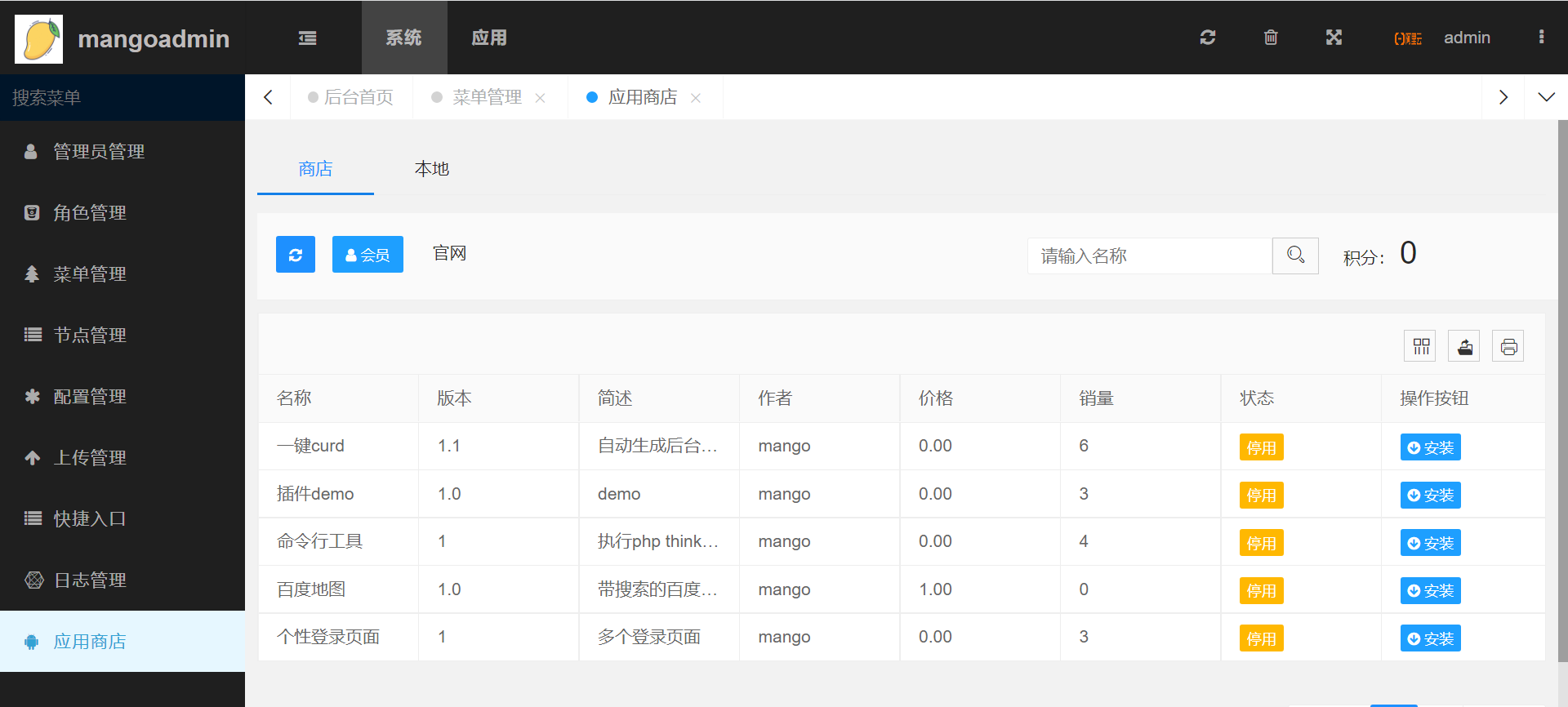 演示地址:http://mango.scmls.cn/admin(账号:admin,密码:123456。备注:只有查看信息的权限)