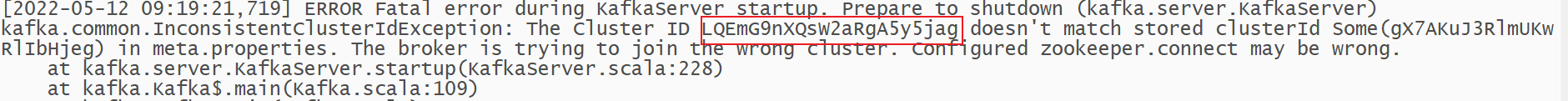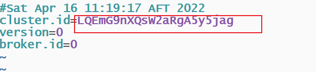 2.修改log.dirs路径下的meta.properties文件,将luster.id的值改成和报错信息中的值一样即可