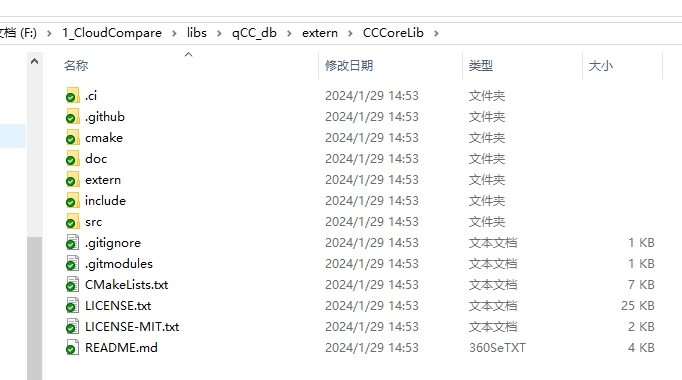 2、下载CCCoreLib源代码,解压路径:F:\1_CloudCompare\libs\qCC_db\extern\CCCoreLib;