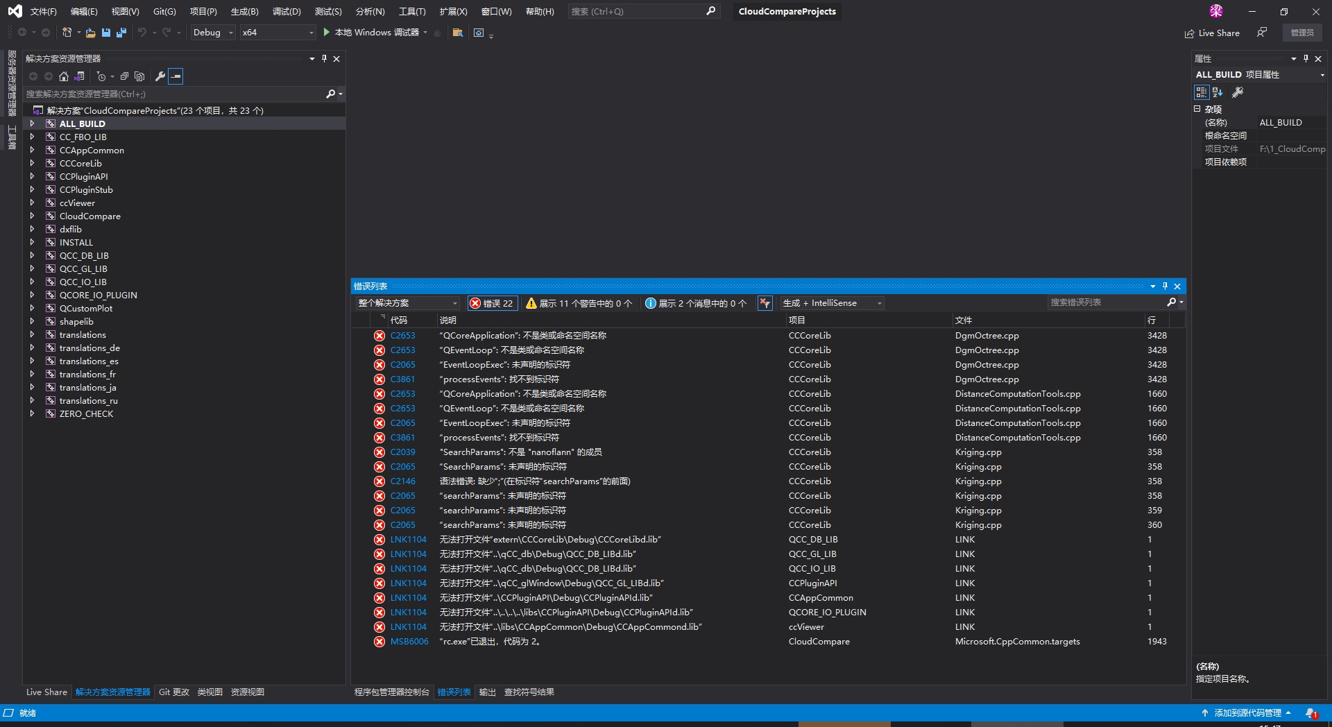 8、编译错误 C2653 “QCoreApplication”: 不是类或命名空间名称 CCCoreLib F:\1_CloudCompare\libs\qCC_db\extern\CCCoreLib\src\DgmOctree.cpp 3428