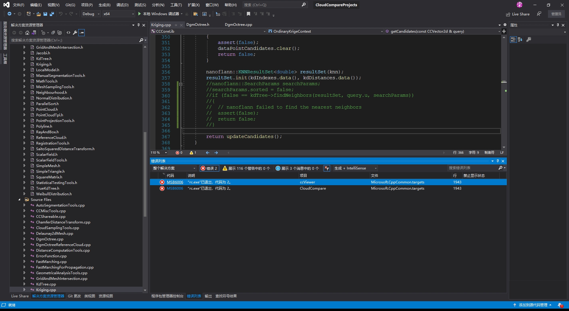 9、编译错误:E0135 namespace "nanoflann" 没有成员 "SearchParams" CCCoreLib F:\1_CloudCompare\libs\qCC_db\extern\CCCoreLib\src\Kriging.cpp 358