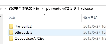 解压后,您应该能看到几个文件夹,其中【Pre-built.2】包含了pthreads for win32的头文件和库文件,【pthreads.2】是源代码,而【QueueUserAPCEx】是一个需要WDK支持编译的驱动。
