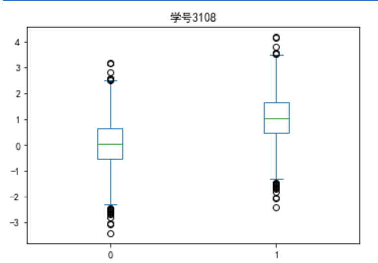 import matplotlib.pyplot as plt import numpy as np import pandas as pd x=np.random.randn(1000) D=pd.DataFrame([x,x+1]).T D.plot(kind='box') plt.title('学号3108') plt.show()