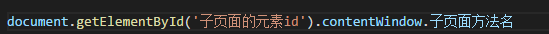 document.getElementsByClassName("子页面元素类名")[i].contentWindow.子页面方法名;