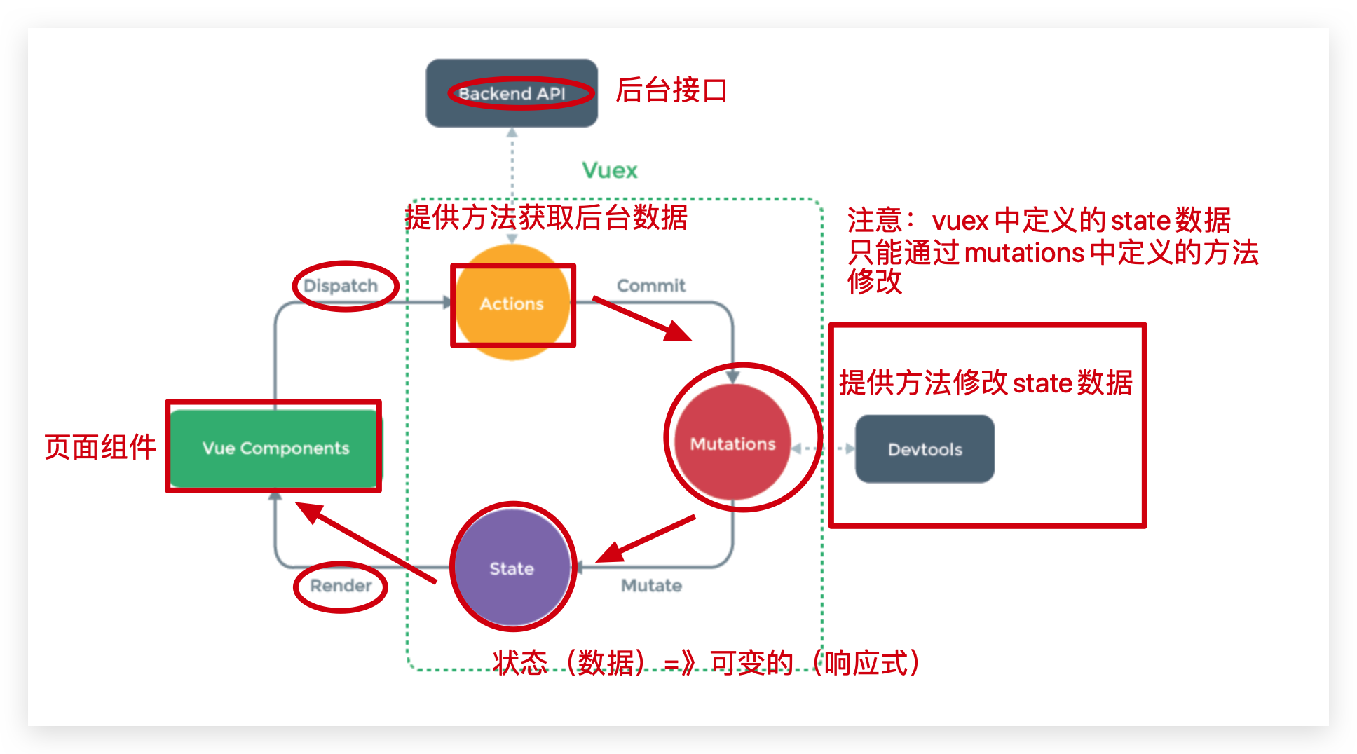 - actions 请求数据,响应成功后把数据提交给mutations