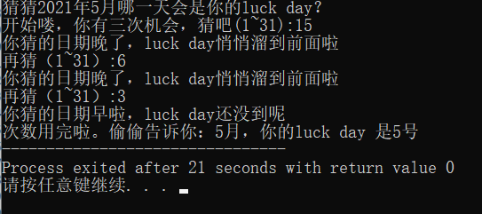 printf("猜猜2021年5月哪一天会是你的luck day?\n");