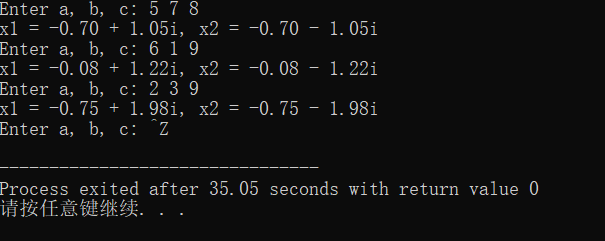 printf("x1 = %.2f + %.2fi, x2 = %.2f - %.2fi\n", real, imag, real, imag);