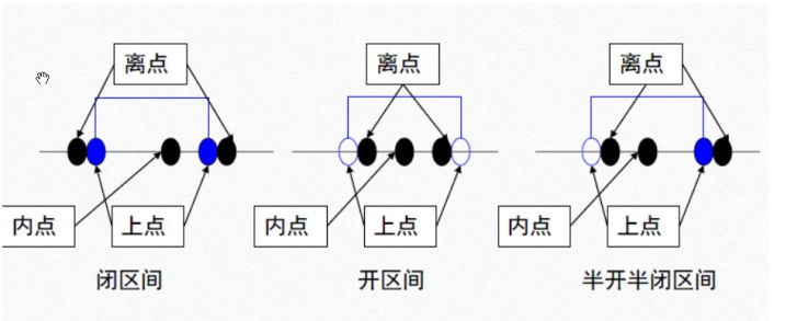 (2).离点:指得就是离上点最近得点,如果是开区间,那么离点就在域内,如果是闭区间,那么离点就在域外。